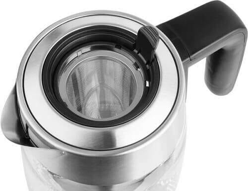 Dostępny jest tryb utrzymywania temperatury wody w kolbie. W czajniku zastosowano estetyczną i maksymalnie higieniczną szklaną misę.