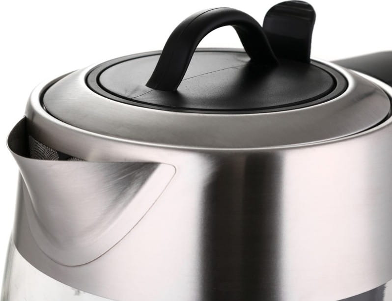 Model otrzymał ciekawe oświetlenie dekoracyjne. Wzdłuż konturu dna umieszczono taśmę LED, która zapewnia ciekawe efekty świetlne podczas całego cyklu podgrzewania. Kolba ma uproszczoną konstrukcję, ponieważ wszystkie elementy regulacyjne są umieszczone na podstawie. Dzięki temu czajnik elektryczny jest bardziej niezawodny i praktyczny. Szklany korpus jest łatwy w czyszczeniu, podobnie jak płaska grzałka wykonana ze stali nierdzewnej dopuszczonej do kontaktu z żywnością.