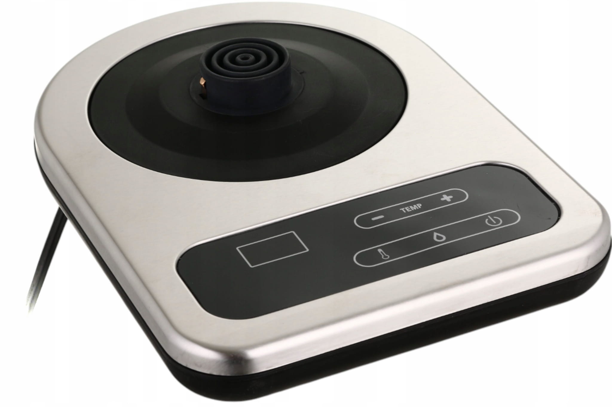 Patrzymy na urządzenie umieszczone na obrotowej podstawce Strix. Takie urządzenia nie są po prostu umieszczane na podstawie - jest to sposób dostarczania energii elektrycznej. Dlatego czajnik nie ma przewodu przy samym zbiorniku, a jedynie na tej podstawie. Ten model dostosowuje parametry pracy za pomocą przycisków dotykowych na podstawie. Za ich pomocą można wybrać dowolny rodzaj pracy urządzenia.