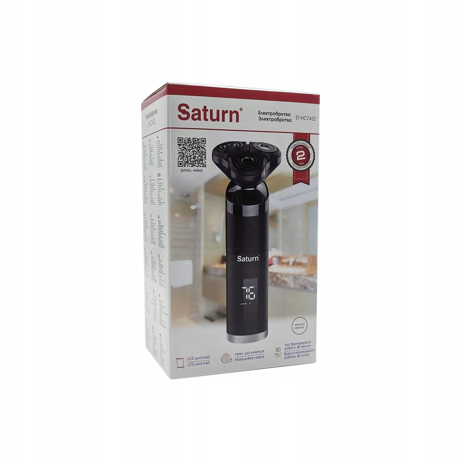 Golarka z 3 ruchomymi ostrzami, wyświetlacz LCD, Saturn ST-HC7422 Czarna