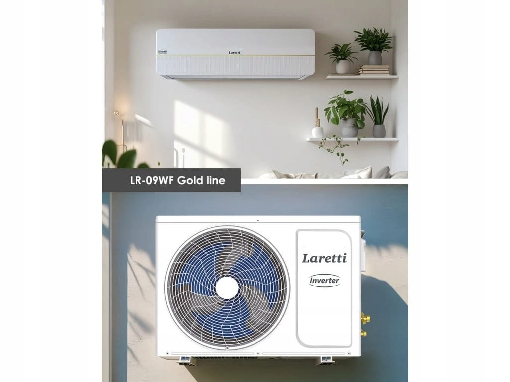 Klimatyzator ścienny LARETTI LR-09WF Gold Line to nowoczesne, energooszczędne urządzenie o mocy 2,5 kW, przeznaczone do pomieszczeń o powierzchni do 34 m².