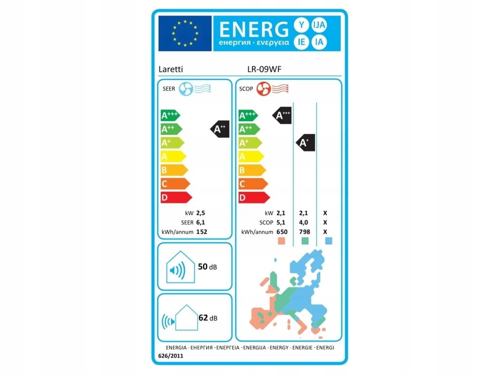 Klasa efektywności: A++ (chłodzenie) / A+ (ogrzewanie)