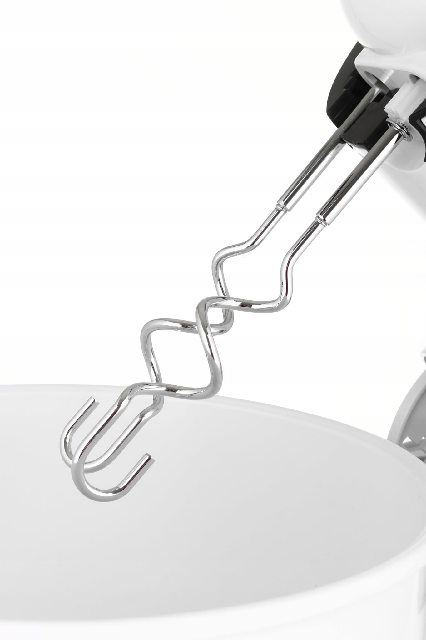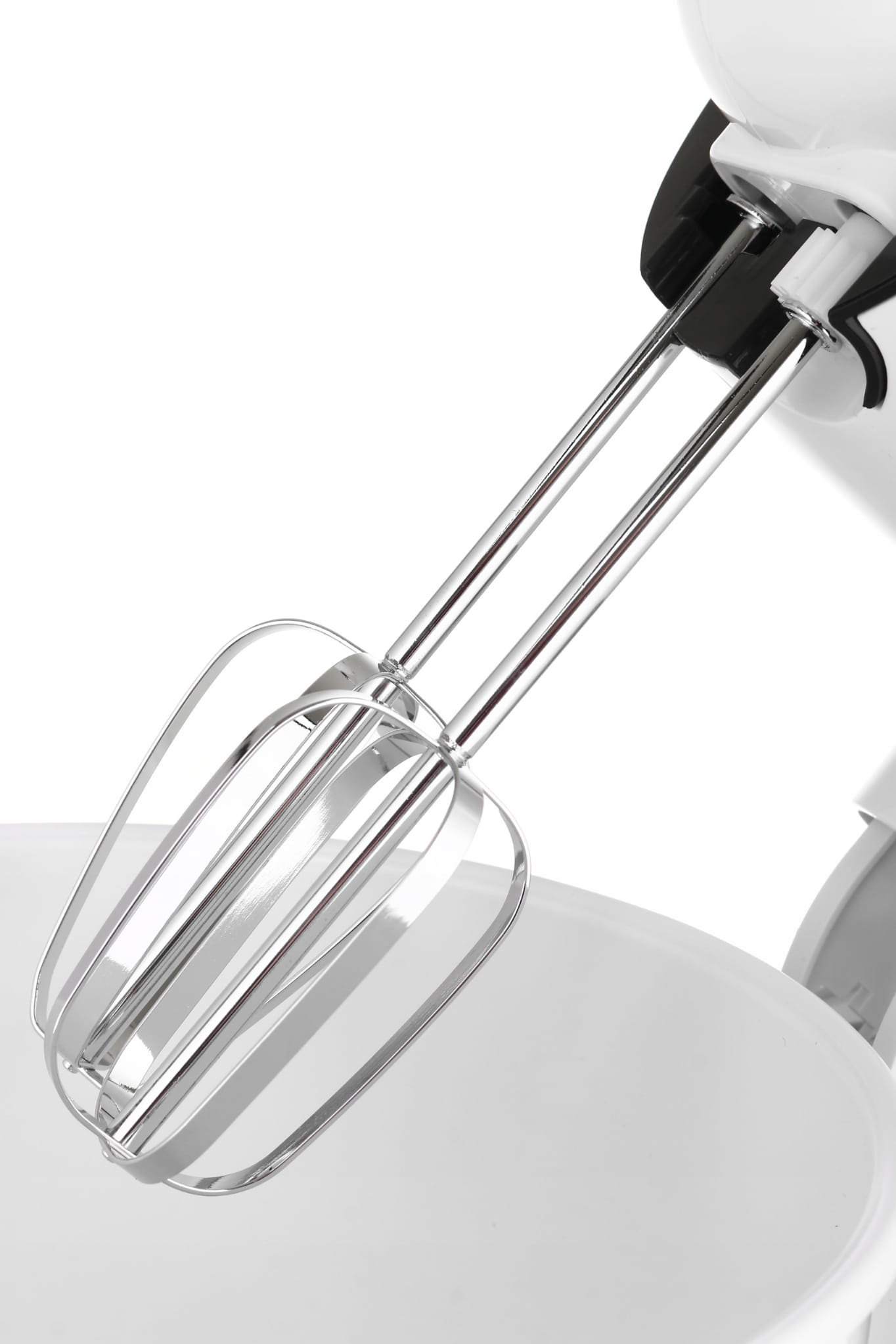 Rodzaj urządzenia: mikser z misą; Misa główna (L): 2.5; Moc (W): 250; Liczba prędkości: 5; Tryb turbo; Misa obrotowa; Wstępnie zainstalowane programy: Pojemniki: misa główna; Nasadki: trzepaczki do ubijania; haki do ugniatania; Zasilanie: sieciowe; Materiał głównej misy roboczej: tworzywo sztuczne
