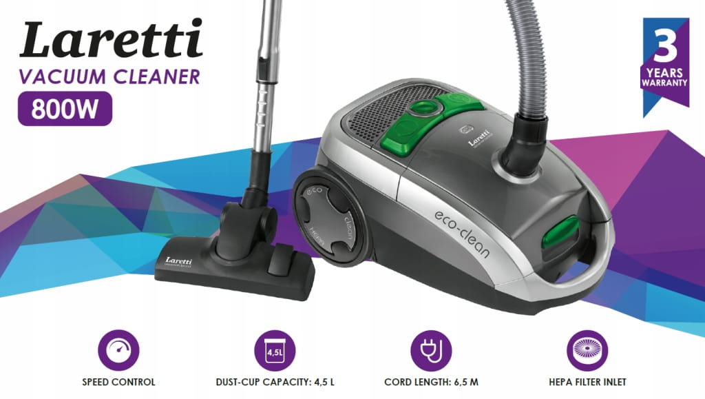 LARETTI LR-VC8116 to odkurzacz, który nie tylko zadba o czystość podłóg, ale też o świeże, zdrowe powietrze w Twoim domu.
