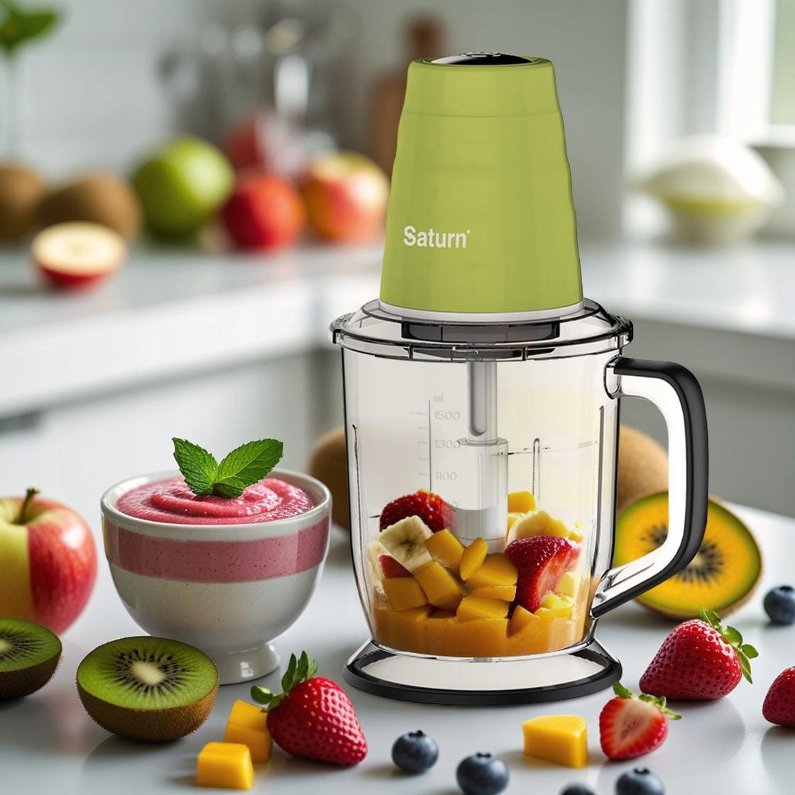 Rozdrabniacz marki Saturn jest średniej wielkości urządzeniem z niesamowicie praktycznym zastosowaniem. Możesz stosować go do szatkowania warzyw, owoców, orzechów, mięs itp. Wypróbuj go i odkryj jak wiele czasu oraz pracy uda ci się zaoszczędzić przy procesie przygotowywania posiłków!