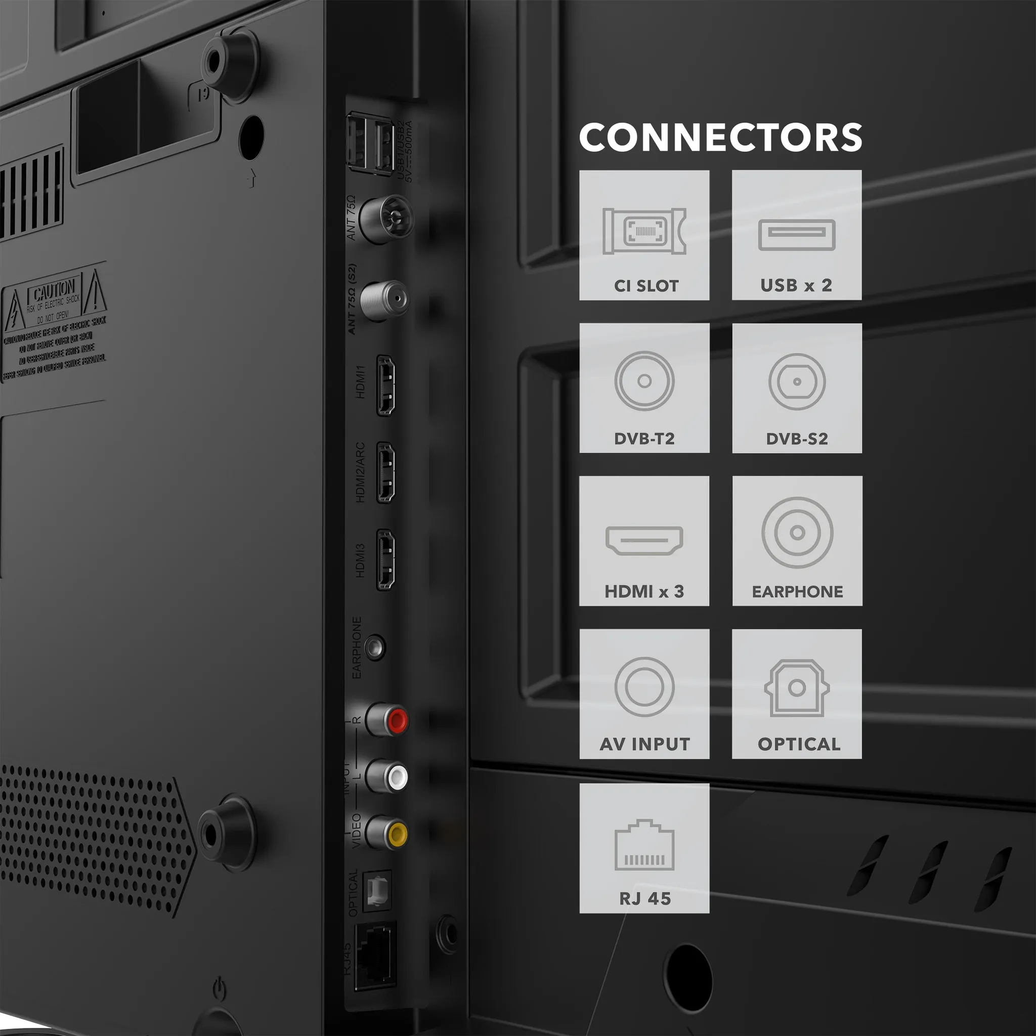 Telewizor został wyposażony w niezbędne porty i moduły łączności: